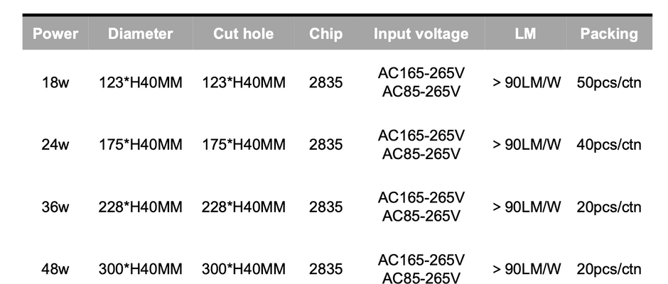 18W - 24W - 36W - 48W